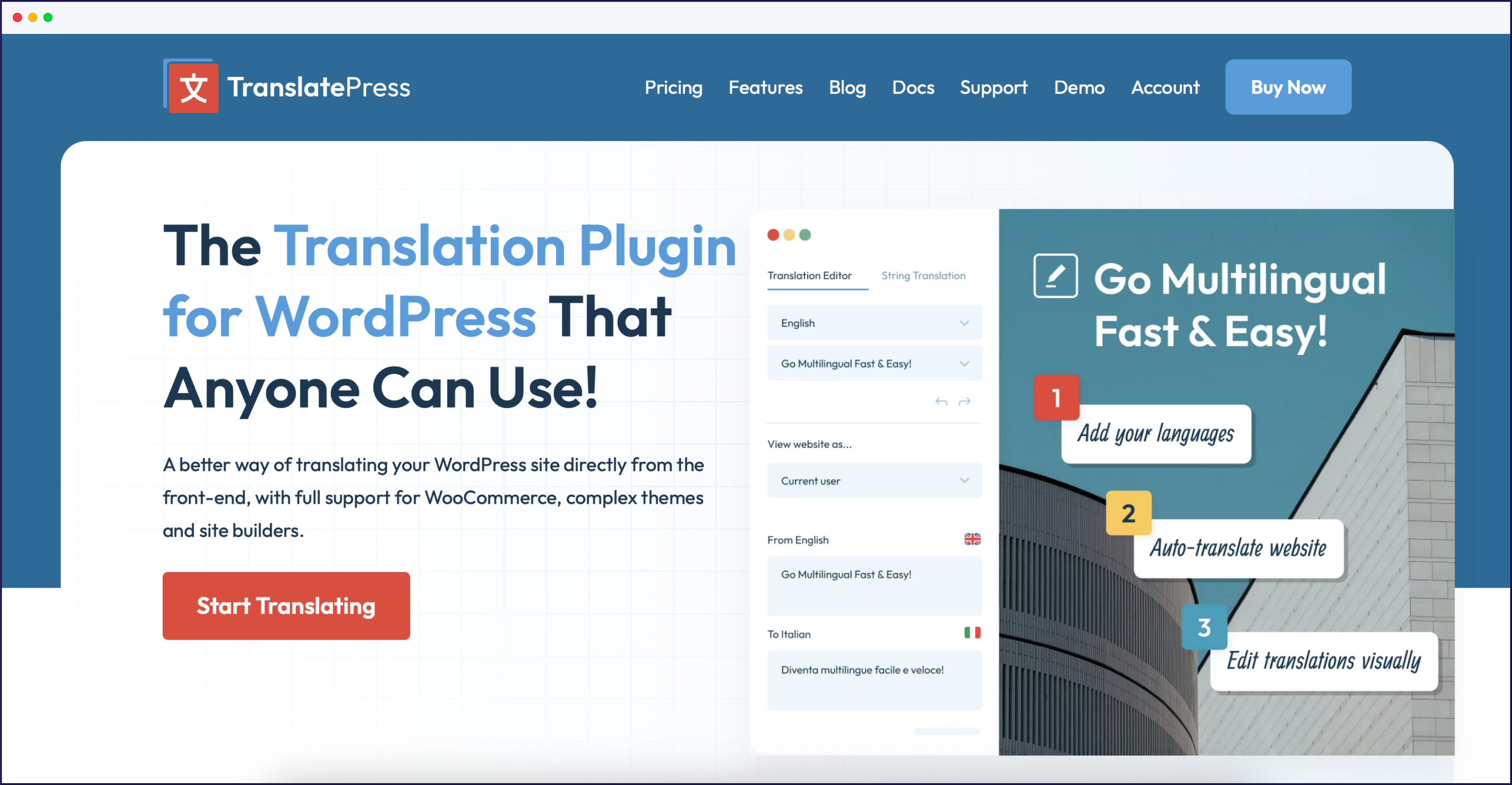 Both TranslatePress and Weglot include a visual editor for frontend changes, allowing you to click, edit, and localize any page element in line with the needs of your audience.