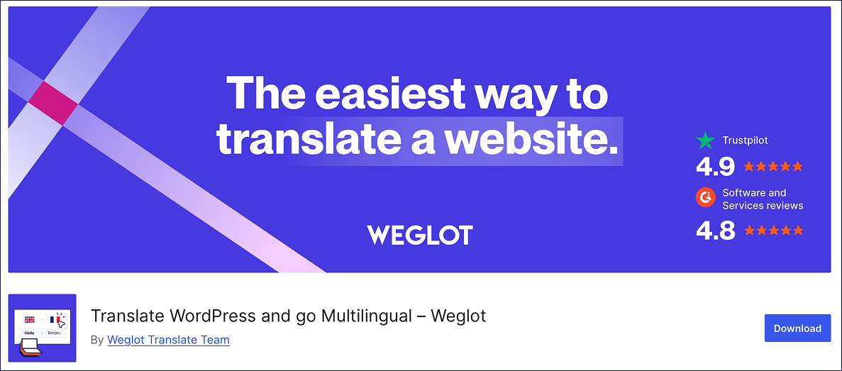 Weglot (€150-790+) is a go-to for sites of all sizes, avoiding performance issues by hosting your translations in the cloud. It’s the ideal WordPress translation plugin for content-driven businesses, with excellent integrations and time-saving automations.